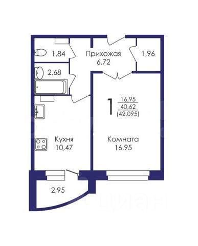 Общая площадь42,1 м2