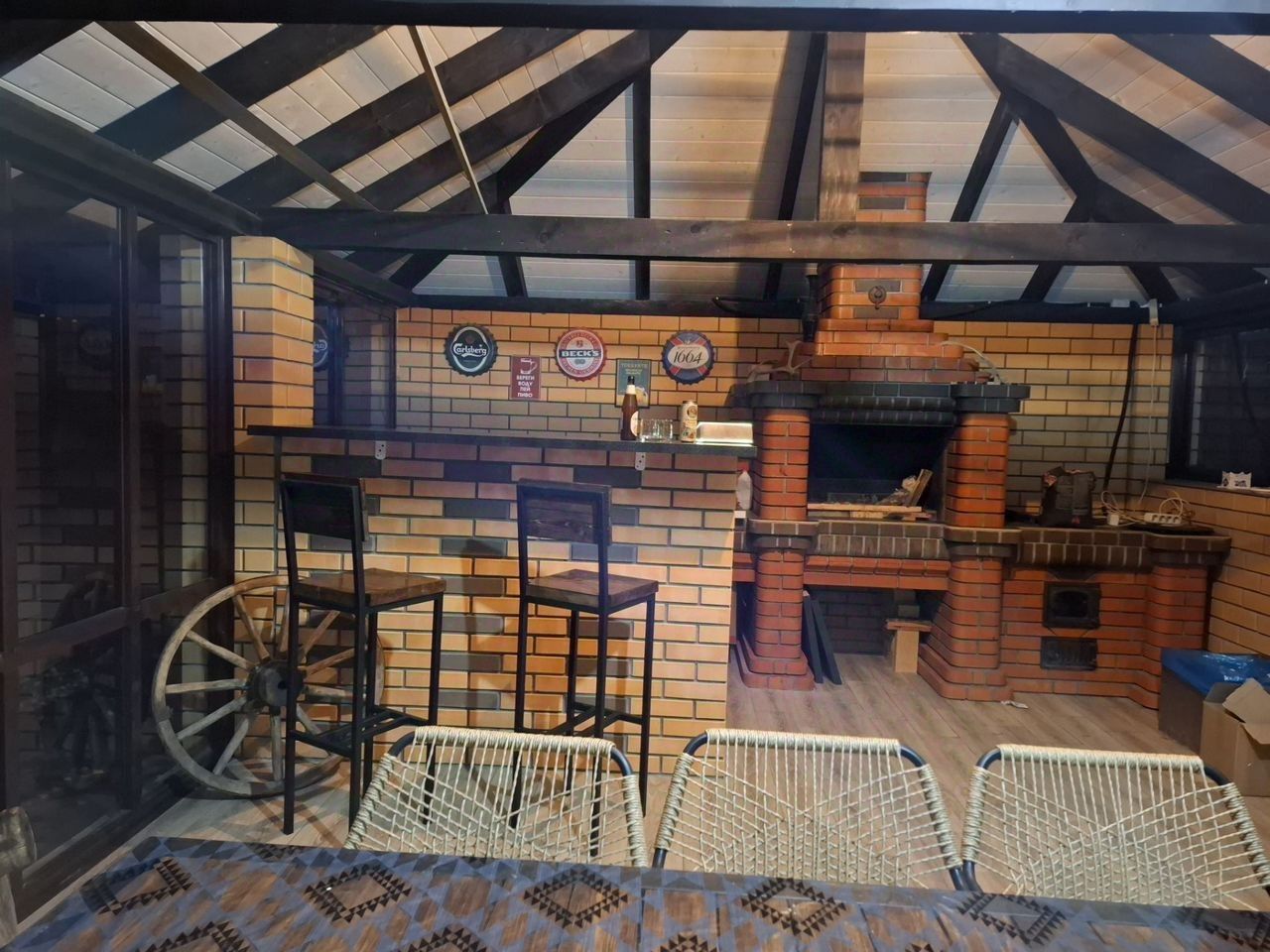 3 этаж- 3 изолированные спальни, большой холл, туалет, 2 этаж- большой зал, ванна, туалет, 1 этаж- кухня- гостинная, каминный зал, сауна в доме (на дровах). В доме есть все необходимое для комфортного проживания. Цена уже включает оплату всех коммунальных услуг.