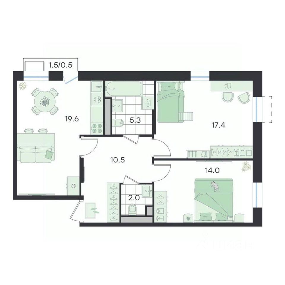 Продаётся 2-комнатная квартира в строящемся доме (Театральный, к2), срок сдачи: II-кв. 2026, общей площадью 68.5 кв.м., на 4 этаже. Бутик-квартал ''G3 Театральный''